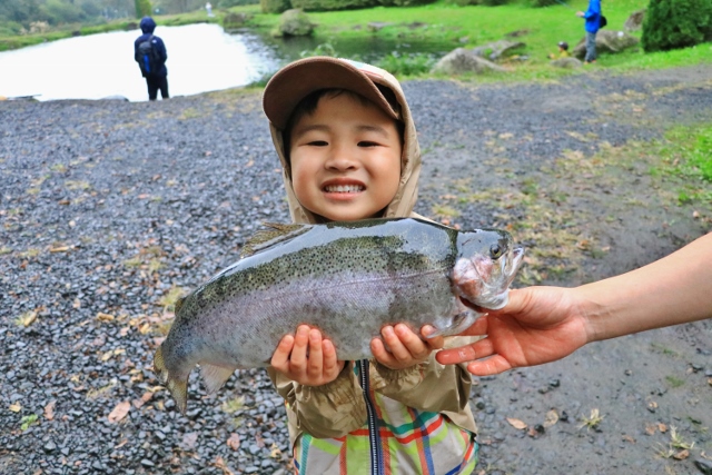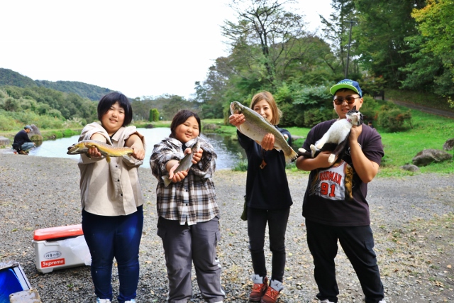 秋の行楽シーズン まだ紅葉はしてませんが 暑くもなく寒くもないいい時期ですねー! 本日御来場で山形からお越しの常連の御家族さん 見事なデカ鱒釣り上げてましたよ 日中暖かくても急に寒くなったり致しますので上着は御準備された方がいいですね