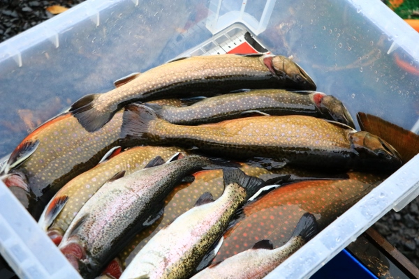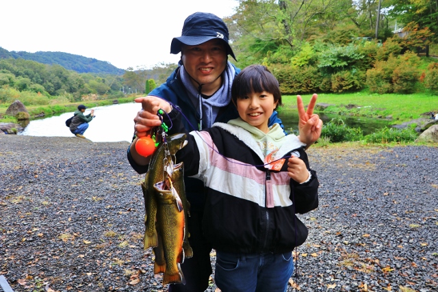 今日は気温も低く昼過ぎには予報に無い冷たい雨が降り皆さん寒そうでしたね 本日御来場の親子さん ブルックトラウト沢山釣り上げて 大変満足されてましたよ