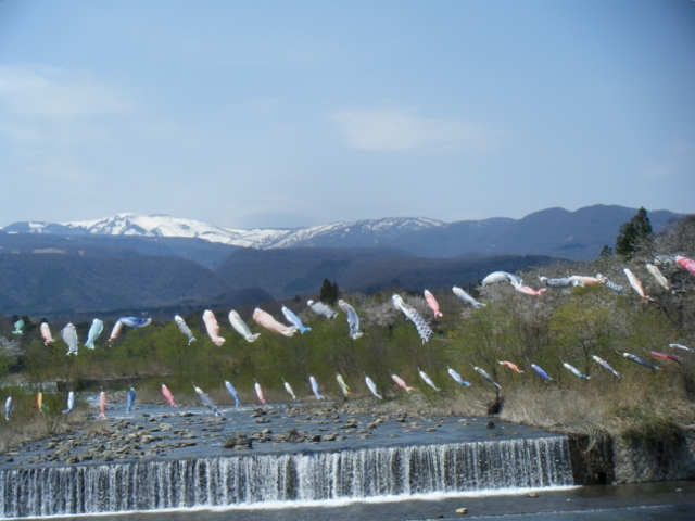 毎年恒例の 鯉のぼりが今年も元気良くこけし橋を泳ぎ始めましたー! エコーライン開通と同時に泳ぎ始めるこの鯉のぼり 地元の人の話では 川の中にも泳いでるとの事ですよー! 因みに蔵王FSでは 鯉のぼりに負けない元気な魚達が泳いでまーす!