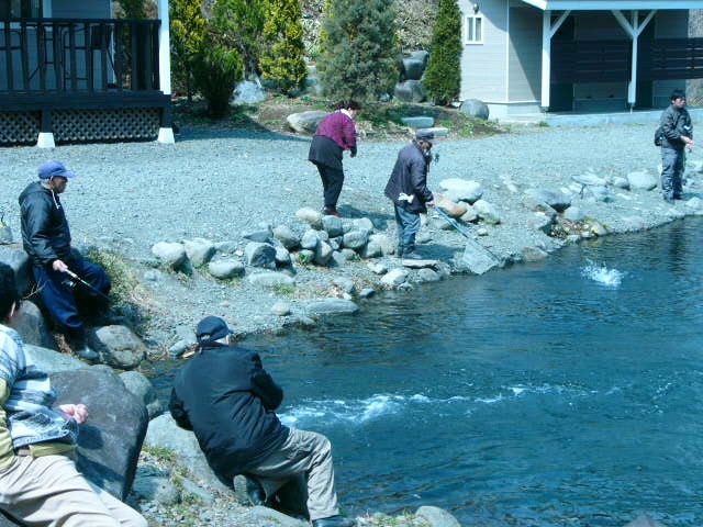 週末の荒れた天気も過ぎ去り 今日は最高の釣り日和となりましたー! いよいよ蔵王も春本番ですね 裏山では 「ホ〜ホケキョ!」なんて鳥も鳴いちゃってます そして魚達は 朝から高活性で 60オーバーのロック君が大暴れ お客様から悲鳴にも似た歓声が上がってますよー!