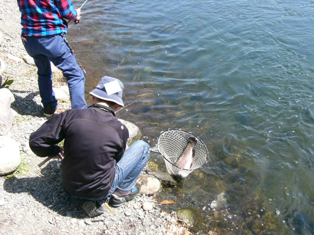 明日は雪融け感謝祭を開催致しまーす! 天候の方が心配ですが 今日の天気は 曇りで無風状態と嵐の前の静けさですかねー! でも魚達は静けさでは無く午後からは大暴れしちゃってましたー! 爆弾低気圧に負けない位の暴れん坊達が明日のウォーミングアップでもしてるかのように大暴れ ラインブレイクが多発してましたー!