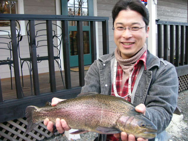 今日は 春のポカポカ陽気でお客様ものんびりモードですねー! 仲良しグループで来場のお客様ものんびり釣りを楽しまれてる様子で 皆さん管釣りは初心者との事ですが 中々のサイズ釣り上げてましたねー!