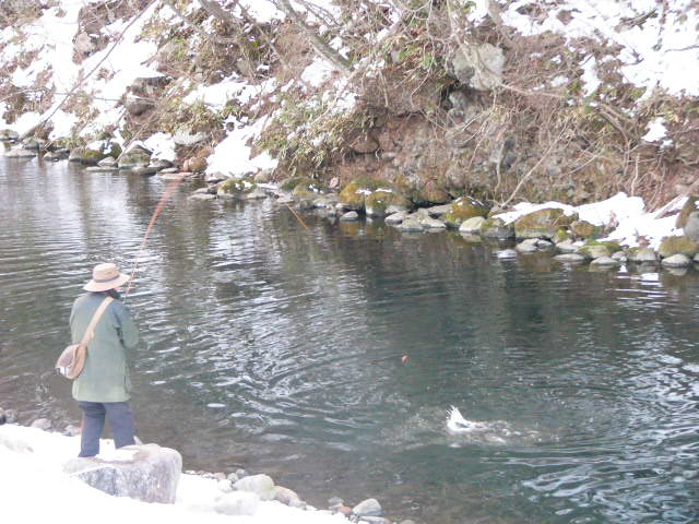 白銀のスポーツは スキー場だけでは無いんです ここ蔵王FSでの釣りも 白銀のスポーツと言えるんでは無いでしょうか! 真っ白の場内で魚との真剣勝負いかがでしょうかー