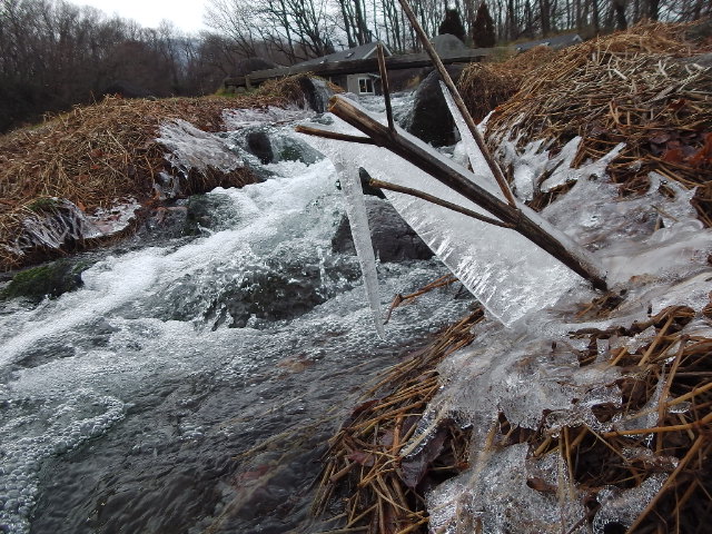 今日も 天気は良かったですが 気温が低く寒かったです 場内の至る所に霜柱やしぶき氷が出来てますよ