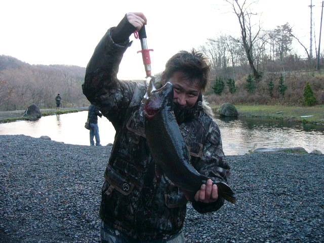 とか言いながら 釣れてるサイズは 50オーバーの大物ばかり 中には「 久しぶりに35センチ位のにじますが釣れたー! 」と小さ目のサイズを釣り上げて喜びを味わうお客様も・・ 釣れた時の喜びも色々何ですね