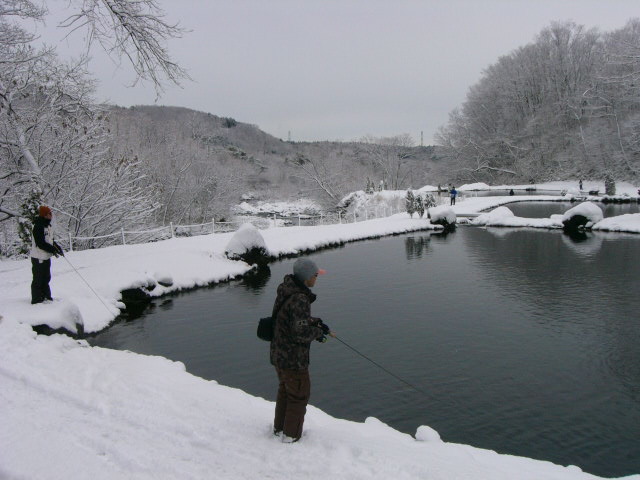 今シーズンもいよいよ 雪かきシーズン! いやいや冬の管釣りシーズン突入ですねー! 不思議と雪が積もって居るとあまり寒く感じませんが オープンの時間で−2℃でした 来場されるお客様も完全な防寒対策ですね! 魚の方もマスマス元気で朝から良く釣れてますよー! 真っ白な景色の中 元気な魚達と遊んでみませんかー!