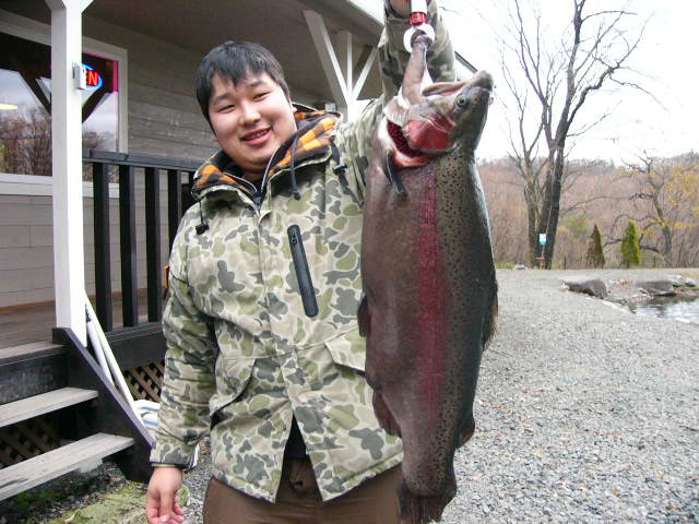 今日も 朝から寒いですねー! 何か雪見たいなのがチラチラと降ってたような・・・ まだ積もる感じでは無いですけどね 昨日から 蔵王fsで大暴れ中のスチール君 今日もあちらこちらで大暴れしてますねー! 写真の常連さんも 6号で見事なスチール 推定65cm! フライで見事釣り上げ大変満足されてましたが この1匹で腕がパンパンになってしまった見たいです! 明日も魚達 大暴れしてくれるかなー?